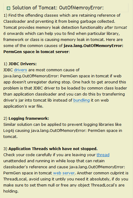 Aunque este post sobre causas y soluciones del OutOfMemory por PermGen sobre se refiere a Tomcat aplica a cualquier AppServer.