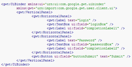 · UIBinder: Permite definir la interfaz mediante xml al estilo del MXML de Flex, lo que hace mas sencillo definir la estructura de la interfaz de usuario.