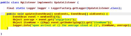 · Defino un Listener para la consulta EPL, esto hará que los resultados del procesamiento de la consulta se pasen a este listener: