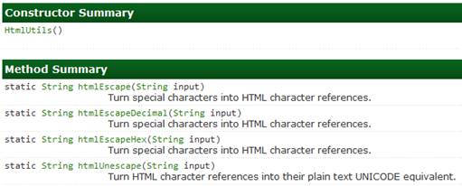 Cierto que esta misma funcionalidad ya la incorpora commons-lang con su clase StringEscapeUtils y además permite escapar XML, CSV, Java, Javascript: