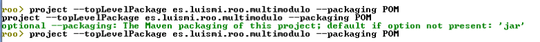 Roo>project –topLevelPackage es.luismi.roo.multimodulo –packaging POM