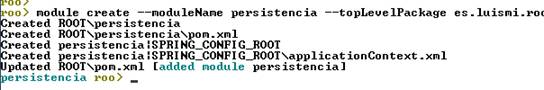 Roo>module create –moduleName persistencia –topLevelPackage es.luismi.roo.multimodulo.dominio