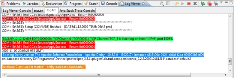 Eclipse Log Viewer permite marcar colores a las consolas y ficheros de logs de Eclipse usando expresiones regulares.
