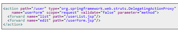 · ContextLoaderPlugin: permite que los action se busquen como beans de Spring. Si usamos la clase DelegatingActionProxy tendremos:
