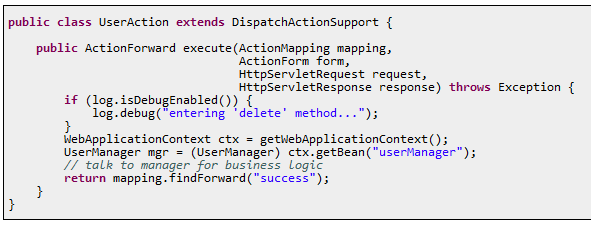· Clases ActionSupport: el Action de Struts hereda de una clase ActionSupport (Spring ofrece soporte para todos los subtipos de las action de Struts), ofrece métodos de utilidad como getWebApplicationContext()
