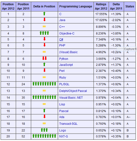 Después de mucho tiempo liderando el ranking Java cede la posición de cabeza a C (aunque por poco):