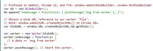 · Con la función BlobBuilder se puede crear un Worker en la propia página sin tener un .js: