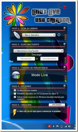 Linux Live USB Creator permite crear directamente un Live USB con la distribución Linux que queramos y cargarlo en un pen USB.