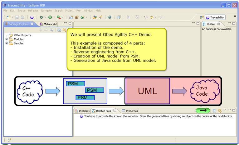Las herramientas de Obeo permiten a aplicaciones monolíticas (donde el GUI y el acceso a base de datos están mezcladas) ser refactorizadas a diseños modernos.