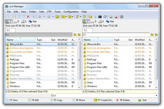 Just Manager es un programa gratis clon del Total Commander.
