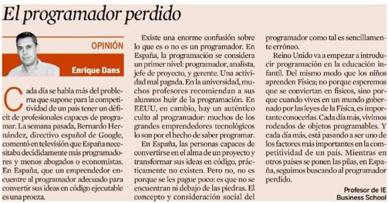 Reflexión de Enrique Dans sobre el mundo de la programación en España!