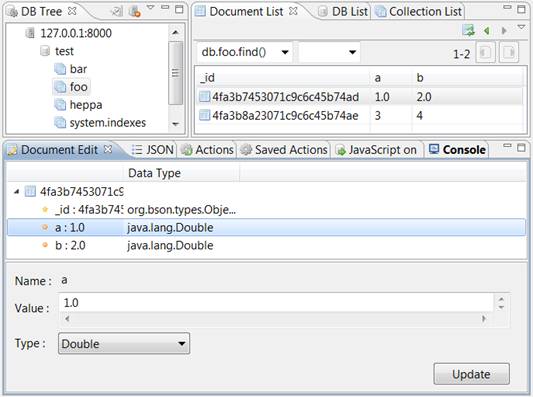 MongoDB es una base de datos NoSQL(más aquí) que ofeece una consola: