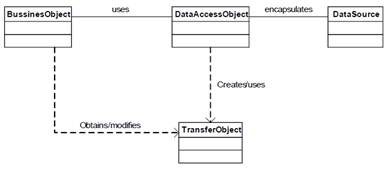 o Transfer Object: es un objeto intermedio entre el BusinessObject y el DataAcessObject