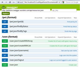 swagger es un framework (especificación e implementación) completo para describir, producir, consumir y visualizar Servicios REST.