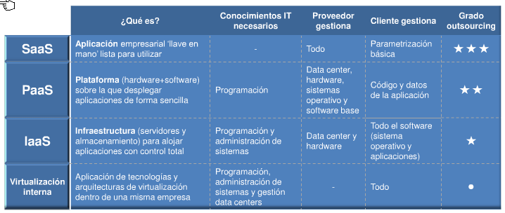 En la siguiente tabla se muestran los modelos de Cloud y sus principales características: