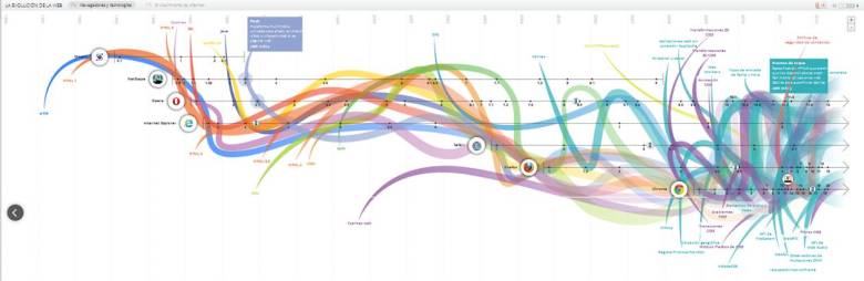 En esta infografía puede verse la evolución de las tecnologías Web desde 1001 hasta la actualidad mostrando las tecnologías y su adopción (navegadores, lenguajes,…):