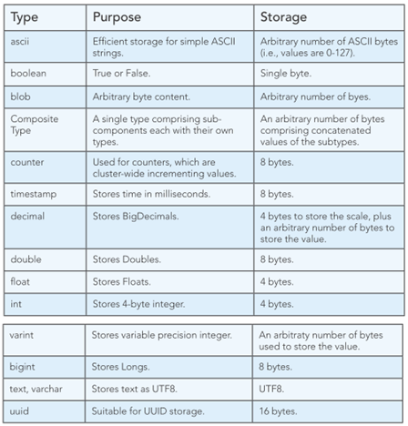 · Filas: la primera columna en una clave compuesta se usa como la clave de partición.