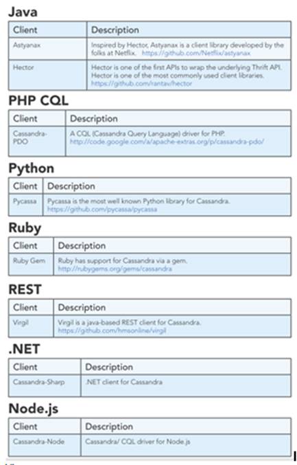 Cassandra tiene una comunidad muy activa desarrollando librerías para diferentes lenguajes.