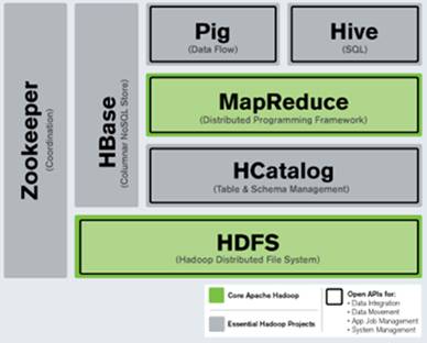 Hive: infraestructura de Dataware que proporciona mecanismos para el almacenamiento, extracción, transformación y carga (ETL), y un lenguaje similar a SQL para realizar consultas y análisis.