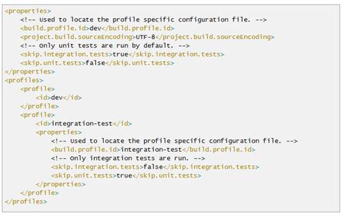 Aquí se ve un profile integration-test en el que se saltan los test unitarios y se lanzan los test de integración: