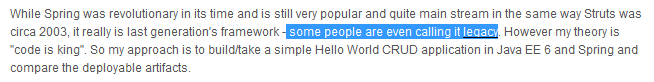 No dejéis de leer su post: https://blogs.oracle.com/arungupta/entry/why_java_ee_6_is , lo de que algunos lo llaman legacy es de traca :):