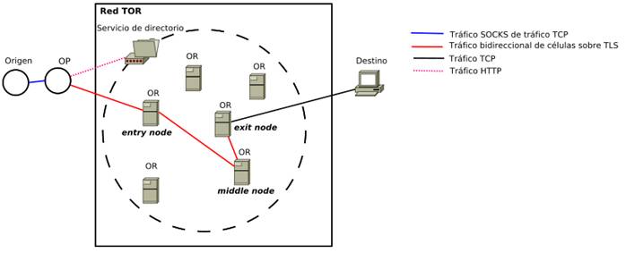 Tor propone el uso de encaminamiento de cebolla de forma que los mensajes viajan desde el origen al destino vía una secuencia de routers especiales llamados ‘routers de cebolla’ (en inglés onion routers).