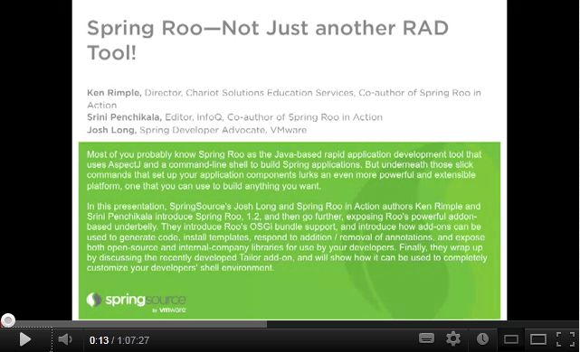 En este videotutorial se muestra lo que ofrece Spring Roo y porque es algo más que otro RAD!