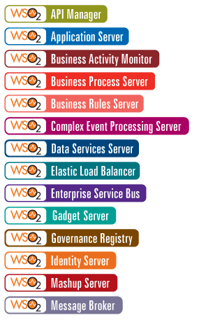 La plataforma WSO2 Carbon la componen un conjunto de productos que dan una solución completa al desarrollo de aplicaciones SOA: