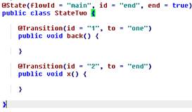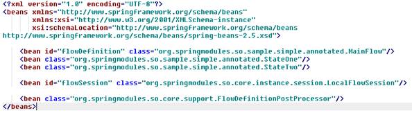 En Spring Workflow todos los componentes del Workflow son beans de Spring y los estados y transiciones por tanto pueden usar las capacidades de Spring.