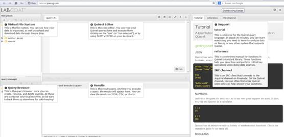 · Labcoat: Precog ofrece este entorno de desarrollo completamente web que permite analizar gráficamente los datos: