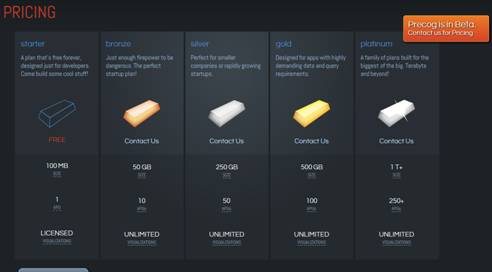 Precog tiene una política de precios que depende básicamente de la capacidad de procesamiento y almacenamiento: