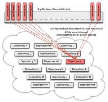 Además con un gran volumen de tráfico una única dependencia puede hacer que todos los recursos se saturen en segundos en todos los servidores: