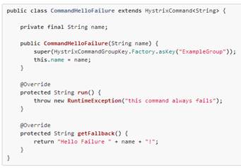 Para controlar la degradación correcta se implementa un método getFallback () que se ejecutará para cualquier tipo de fallo: run(), tiemout, pool,…