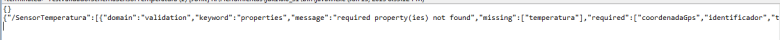 5) Si cargo un JSON incorrecto me indicará donde está el problema, por ejemplo si no introduzco la propiedad temperatura: