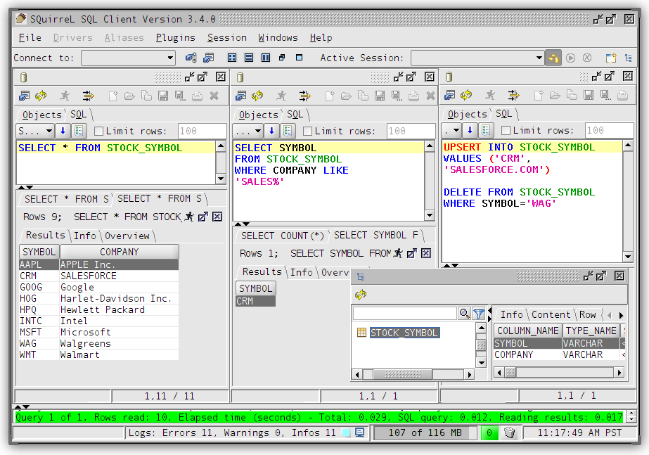 Una vez montado se puede usar desde cualquier herramienta JDBC estándar: