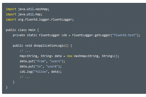 · Logging de datos semiestructurados: un evento consta de 3 componentes: tag, time y record. Tag es cadena separada por . (myapp.access) para categorizar eventos, time en formato UNIX y record es el objeto JSON.