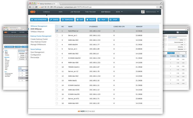 · WANdisco Hadoop Console es un software plug&play que permite desplegar, gestionar y monitorizar clusters Hadoops.