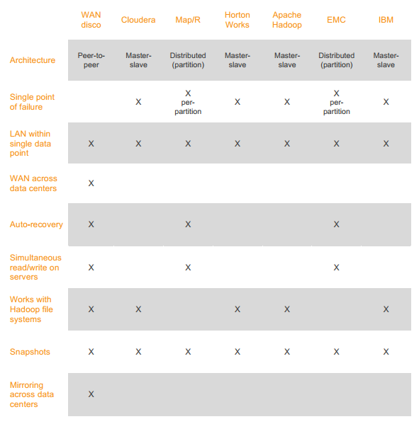 En su whitepaper comparan su distribución con otras como la de Cloudera, IBM, Hortonworks, Map/R y llama la atención su arquitectura Peer-to-peer: