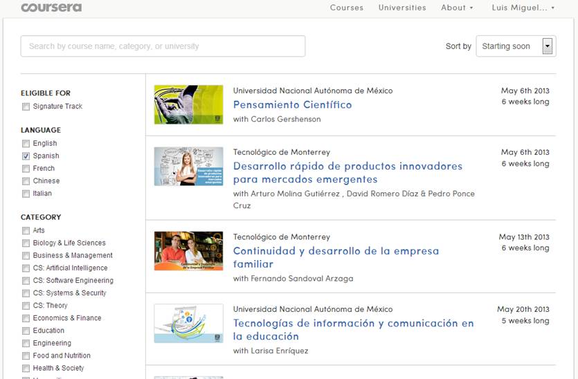 Además Coursera intenta reconocer oficialmente sus cursos con una “firma”, en la se ofrece un certificado