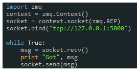 · El servidor usa un Socket de tipo REP a través de un recv() para leer la petición y responder.