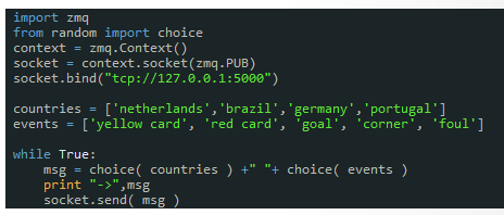 El servidor generará eventos para las diferentes countries y los enviará por el socket de tipo PUB.