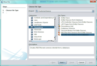 · Elijo Wizard para crear Servicio REST desde Base de datos: