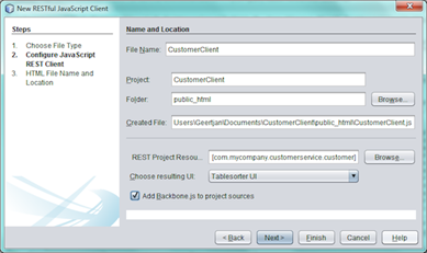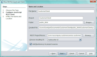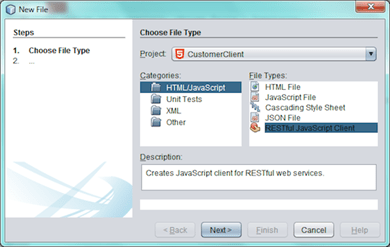 · En el Wizard que nos aparece seleccionamos crear Javascript client de Servicio REST: