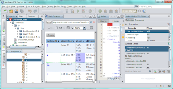 Interesante es el entorno completo para desarrollar aplicaciones HTML que integra NetBeans, con editores HTML5, Javascript y CSS, en este punto NetBeans sigue muy por delante de Eclipse.