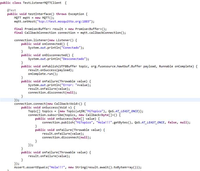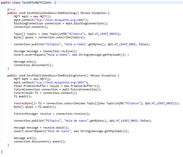 Abajo incluimos el código del TestAPIsMQTTClient: