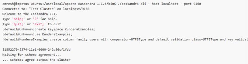 · Creo el Keyspace y la familia en Cassandra: