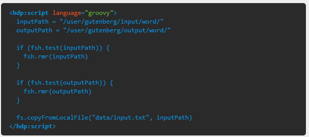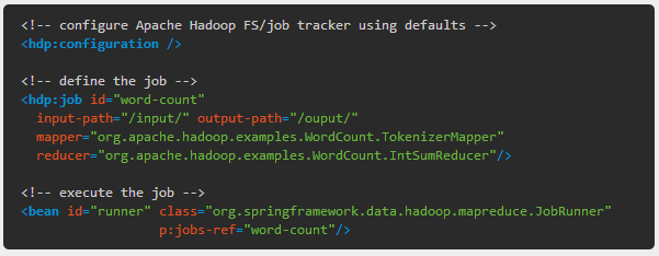 Veamos cómo quedaría el ejemplo de contado de palabras en Spring for Apache Hadoop
