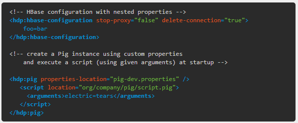 Spring for Apache Hadoop también permite trabajar con Hive/Pig/HBase al estilo Spring: