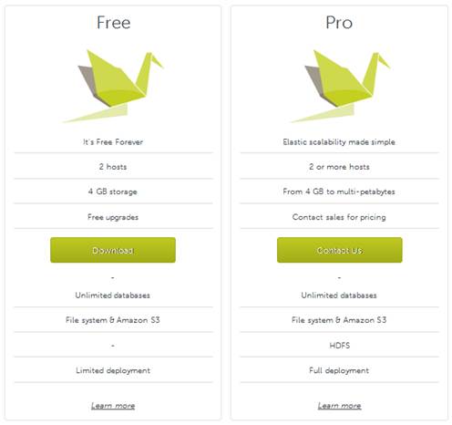Nuodb tiene 2 versiones, una libre y otra Pro que va sobre HDFS: