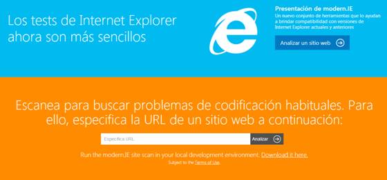 modern.IE consiste en un conjunto de servicios orientados a desarrolladores. Entre ellos, un validador de código (que ofrecerá un diagnóstico de cualquier página con pautas, recomendaciones a seguir o errores a corregir, (todo de manera gratuita) y, por otro lado, la posibilidad de probar páginas web con cualquier versión de Internet Explorer.